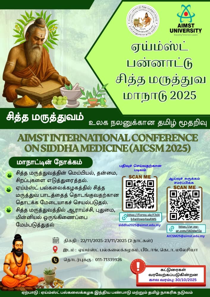 ஏய்ம்ஸ்ட் பன்னாட்டு சித்த மருத்துவ மாநாடு, மலேசியா | AIMST International Conference on Siddha Medicine,